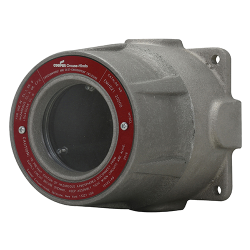 Crouse-Hinds series EMH explosionproof instrument housings are used to enclose 2-1/2″ or 3-1/2″ diameter round, flush rim mounting meters, whose scale or dial would be visible in the 2-5/8″ diameter glass window.