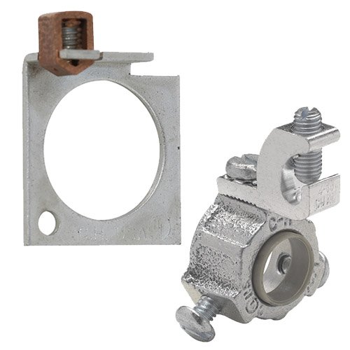 Crouse-Hinds series grounding plates (1/2″ through 1″) and insulated bushings (1/2″ through 3″) permit the use of the conduit as the grounding circuit. Both types have set screws and ground wire terminals.