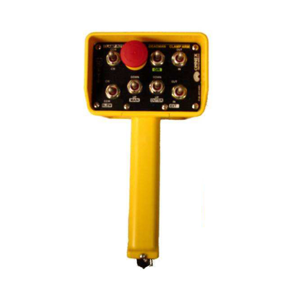 An easy-to-use, 14-function FHSS remote control featuring a Hall Effect trigger for smooth proportional control. This configurable transmitter can be designed with momentary or latched switches and a potentiometer. Each T150 transmitter uses a unique ID code to ensure that no two systems will conflict on a job site. Optional tether cable models are available.
