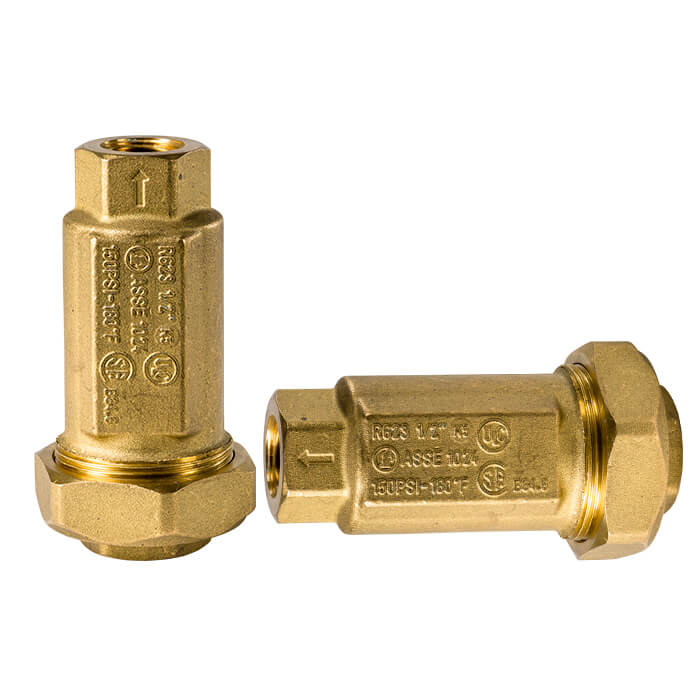 UNLEADED DUAL CHECK VALVE – Brass body with single union.