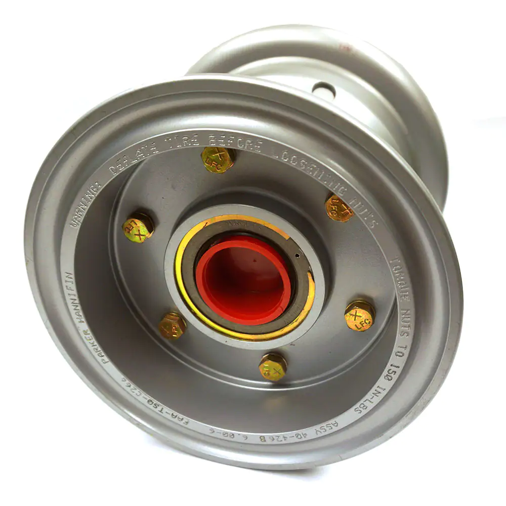 The tail wheel is located on the tail of the aircraft. The tail wheel design consists of two halves bolted together with a tire mounted and is ultimately mounted to the tail gear fork.